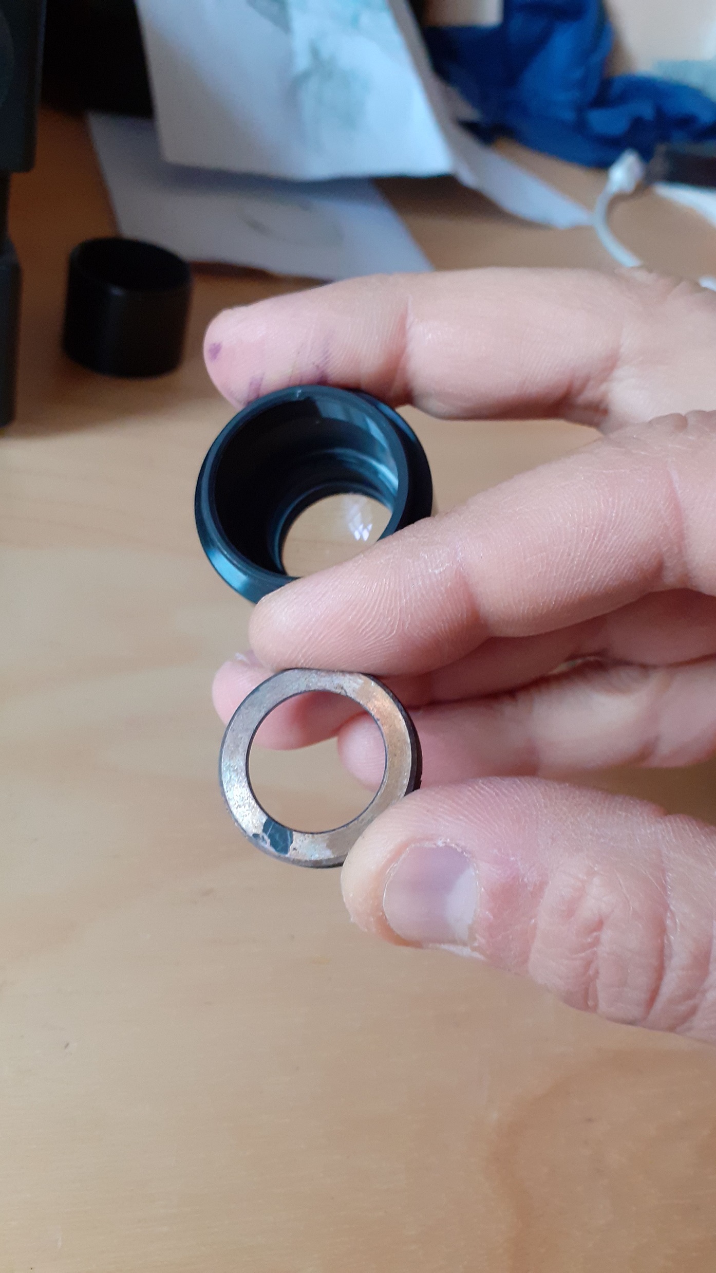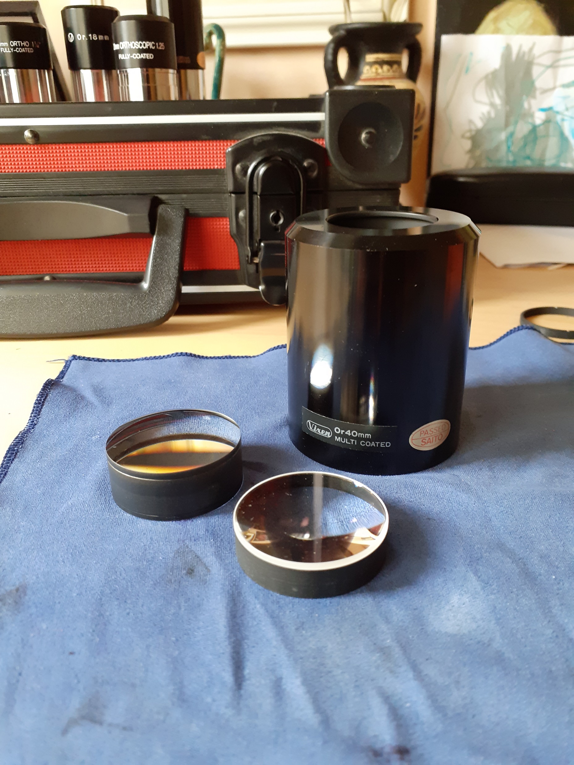 ![]() Una diatriba ed un dubbio che spesso è stato discusso su molti forum di astronomia amatoriale è relativo a questa serie di Ortoscopici sotto brand Vixen e Celestron che furono prodotti a cavallo tra gli anni 80 e 90. I famosi Circle V così chiamati per il tipico cerchio che circonda il simbolo Vixen stampato sui barilotti cromati. Finalmente anche se già lo avevo chiarito in un mio vecchio articolo relativo al 5mm posso confermare lo schema ottico di tutta la serie, soprattutto grazie ad un amico astrofilo Cosimo Lentini che mi ha consegnato una valigetta con tutta la serie circle v (escluso un 4mm pressochè introvabile) per una mia ottimizzazione e annerimento di tutte le lenti. Onestamente possedendo un 5mm mi aspettavo di trovare lo stesso schema ottico di Plossl su tutte le focali anche se dichiarati come Ortho, ma desidero ribadire che si definisce Ortoscopico qualsiasi schema ottico che fornisce una uniforme e regolare correzione di tutte le aberrazioni su tutto il campo ottico. Ragion per cui si può considerare ortoscopico qualsiasi oculare con le dette caratteristiche. La differenza risiede in una cosa: il raggiungimento dell'ortoscopicità di un campo visivo è stato ricercato da vari ottici: tra cui Ernt Abbe secondo lo schema 1+3 e da George Simon Plossl secondo lo schema 2+2, entrambi presenti in questa mitica serie, Kelner secondo lo schema che riporta il suo nome e così via... Dal mio lavoro di ottimizzazione e smontaggio è emerso con mia sorpresa come il 40mm ed il 25mm siano degli Abbe puri secondo il classico schema della piano convessa che precede il tripletto cementato. Qui ho trovato delle pecche nel 40mm ove la piano convessa non era annerita per niente e nel 25mm una blanda o assente opacizzazione dei filetti interni. Stranamente nel 25 per la prima volta trovo un annerimento della piano convessa. ![]() ![]() La focale da 25mm, un Abbe puro ma con difetti di opacizzazione ben visibili. ![]() Dalla focale di 18mm fino ad arrivare al 4mm si ha uno schema di tipo Plossl con due doppietti asimmetrici, tanto è vero che invertendo i gruppi l'immagine a differenza dei doppietti speculari si deteriora notevolmente. ![]() Il 5mm: anche qui medesimo schema di Plossl, riscontrato in tutte le focali dal 18mm compreso fino al 4mm! Sono oculari che conoscevo bene, e superate le pecche dei riflessi interni ben visibili soprattutto nello schema plossl ed in special modo nelle focali da 20mm, 9mm che negli esemplari esaminati tra l'altro non appartengono alla prima produzione Vixen, giù a scendere fino al 4mm, posso affermare come le immagini siano pure e ben bilanciate. Il 40mm è un meraviglioso e rarissimo Ortoscopico con barilotto da 2" e un campo che si aggira sui 52 gradi abbondanti, stracorretto e super contrastato. Meraviglioso per bassi ingrandimenti con qualsiasi strumento. Stelle punta di spillo, cielo scuro e nessun riflesso oltre il field stop specie dopo l'annerimento eseguito. Il 25mm a mio parere il migliore ed il più corretto di tutta la serie. Meraviglioso, un oculare perfetto per comodità osservativa e purezza delle immagini. Nessun difetto se non un campo un po stretto ma peculiarità degli ortoscopici. Ho avuto una visione della Luna con questo oculare unito ad un APO William Optics Fluorostar da 110mm a dir poco stupenda. Dal 18mm scendendo a tutte le altre focali intermedie ed arrivando al 5mm secondo me qualche pecca la si trova...molti i riflessi nella versione di fabbrica che ha un blando annerimento e opacizzazione interna, osservando pianeti e luna specie nel 5mm. Le immagini sono comunque in asse molto buone e contrastate ma non al livello delle focali che utilizzano lo schema puro di Abbe. Il 12,5mm dopo il 40mm e 25mm è la mia migliore scelta della serie. Focale da sempre affascinante, un field stop nettissimo ed un contrasto pazzesco. Splendida l'osservazione di stelle doppie e Luna. Una volta anneriti e opacizzati le cose sono migliorate notevolmente. Meraviglioso osservare con il 7mm 6mm luna, pianeti e stelle doppie...immagini purissime e contrastate. Li ho confrontati con degli ultima plossl e dei T japan i quali sì, possedevano un campo maggiore ed un miglior contenimento della cromatica laterale uscendo dall'asse ottico, ma il contrasto ed i dettagli visibili erano alla fine gli stessi. Il 5mm presenta qualche immagine fantasma e una cromatica laterale piuttosto accentuata, confrontato con un Radian ed un Baader Genuine Ortho di analoga lunghezza ne è uscito palesemente sconfitto, pur offrendo immagini di tutto rispetto e ad alto contrasto. Il 4mm che provai anni fa ricordo aveva una estrazione pupillare proibitiva e analoghe prestazioni delle focali maggiori. Concludendo: sono oculari splendidi, oramai da collezione, se si chiude un occhio per la cromatica laterale riscontrata negli schemi Plossl e i difetti di opacizzazione siamo comunque ai vertici in termini di contrasto. Strana la scelta della Vixen di produrre focali lunghe in schema ortoscopico di Abbe e focali corte utilizzando lo schema Plossl e per di più all'interno della medesima serie! Il motivo? francamente non ne ho idea, ma le produzioni successive hanno mostrato come per le focali corte lo schema di Abbe sia il migliore..forse una fase sperimentale in un periodo in cui l'astronomia ottica offriva oculari di livello e continua ricerca. Chi fosse interessato a migliorie su questa serie può contattarmi liberamente. |