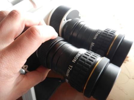 affiancate a lato: sotto un forte flash e con oculare poggiato su una